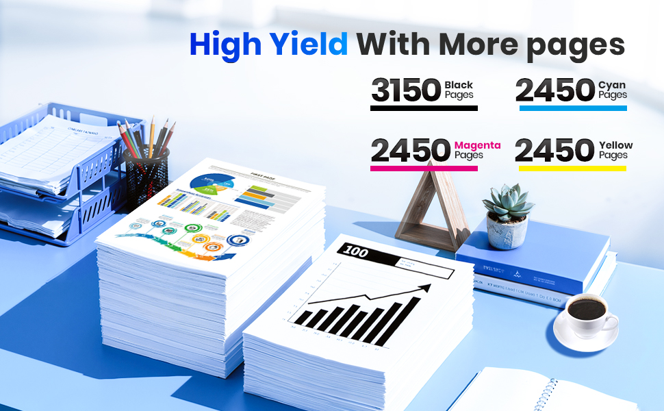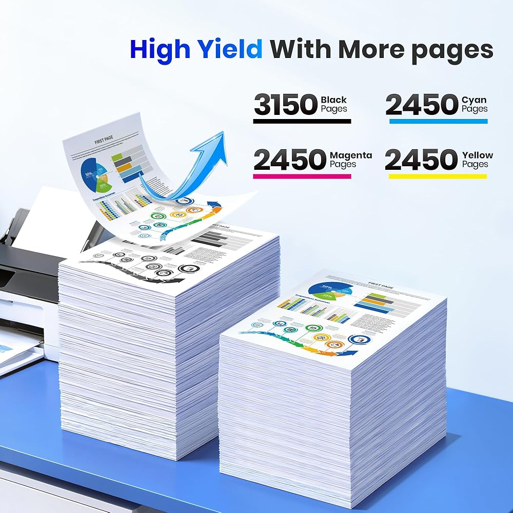 Page Yield: 3,150 Pages per 206X Black Toner Cartridges , and 2,450 Pages per 206X Color Toner Cartridges 5% coverage (Letter/A4), work for 206x hp toner cartridge set