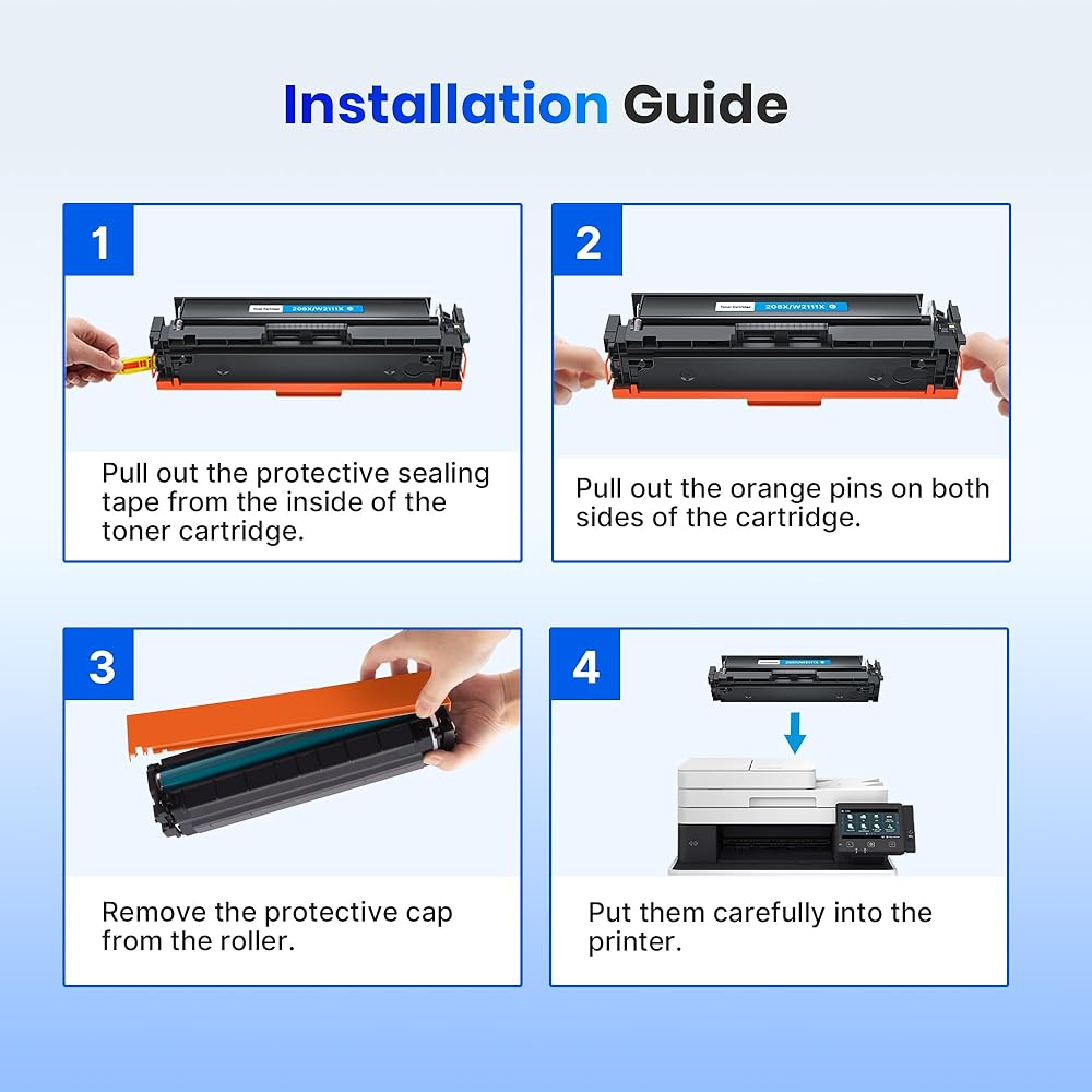 With Chip: 206x hp toner cartridge set high yield for hp 206a toner cartridges 4 pack contain the chips, no need to remove and easy to installing your 206x toner for hp mfp m283fdw toner cartridges