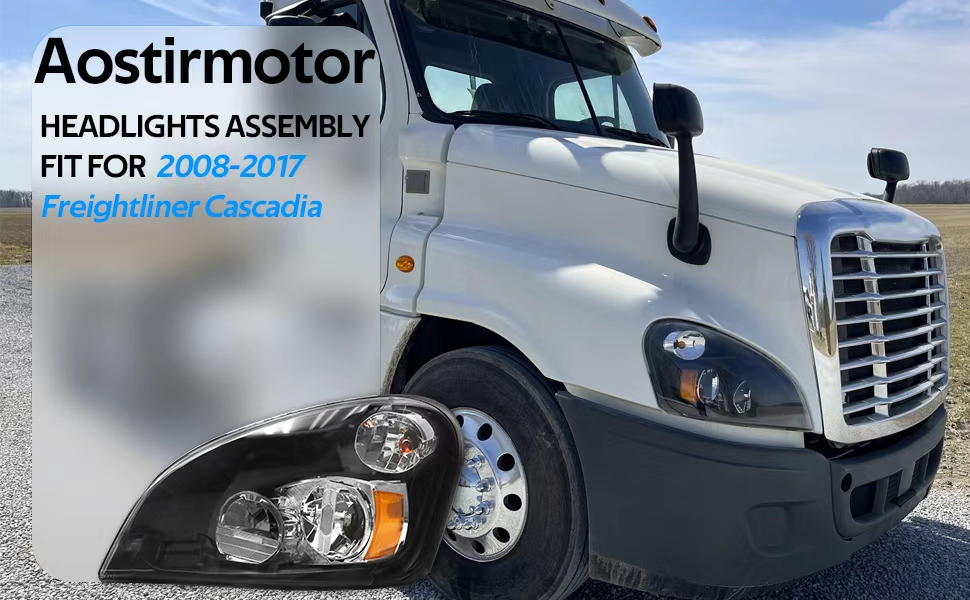 【FITMENT】Headlight Compatible with 2008-2017 Freightliner Cascadia Trucks. Compatible with Halogen Type Headlights Models.Including Halogen bulbs.