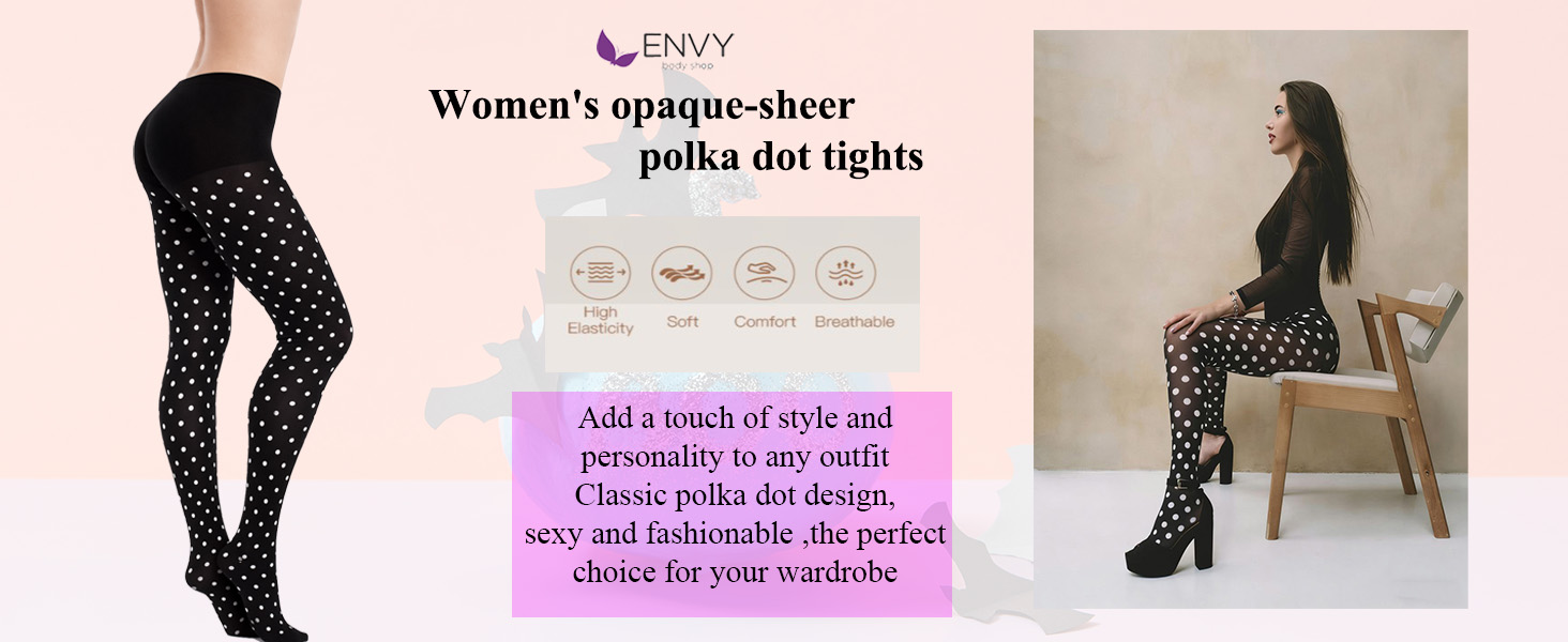 CLASSIC DESIGN: Women's opaque-sheer polka dot tights featuring a stylish pattern that stops at the thigh area, creating a sophisticated look perfect for pairing with dresses and skirts