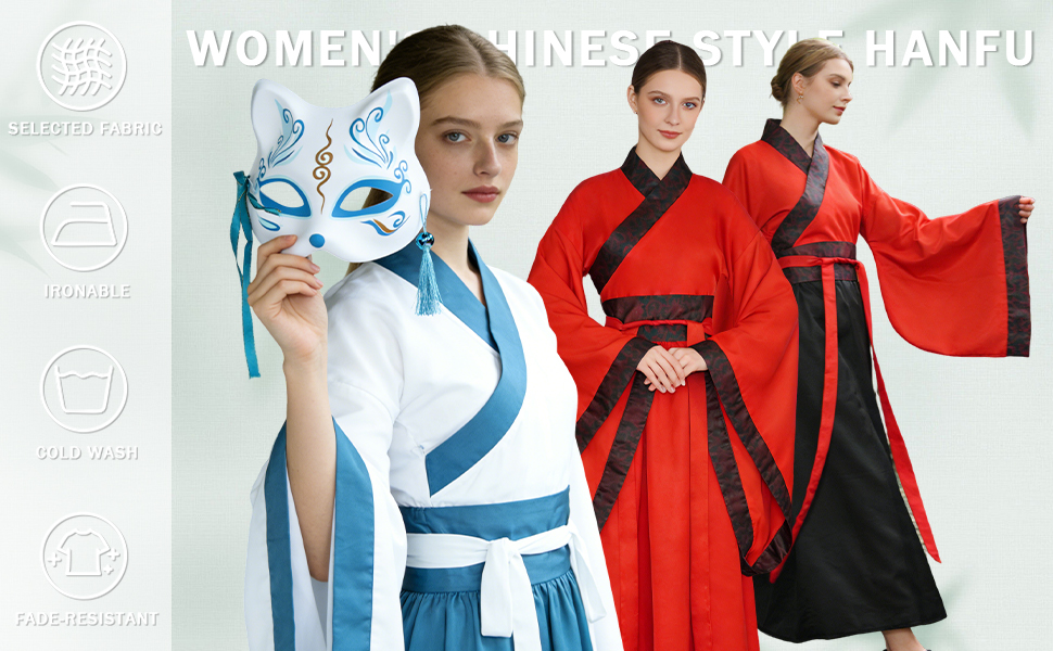 【Complete Set Includes】Comes with a coordinating decorative mask and a traditional folding fan to complete your graceful and polished Hanfu look.