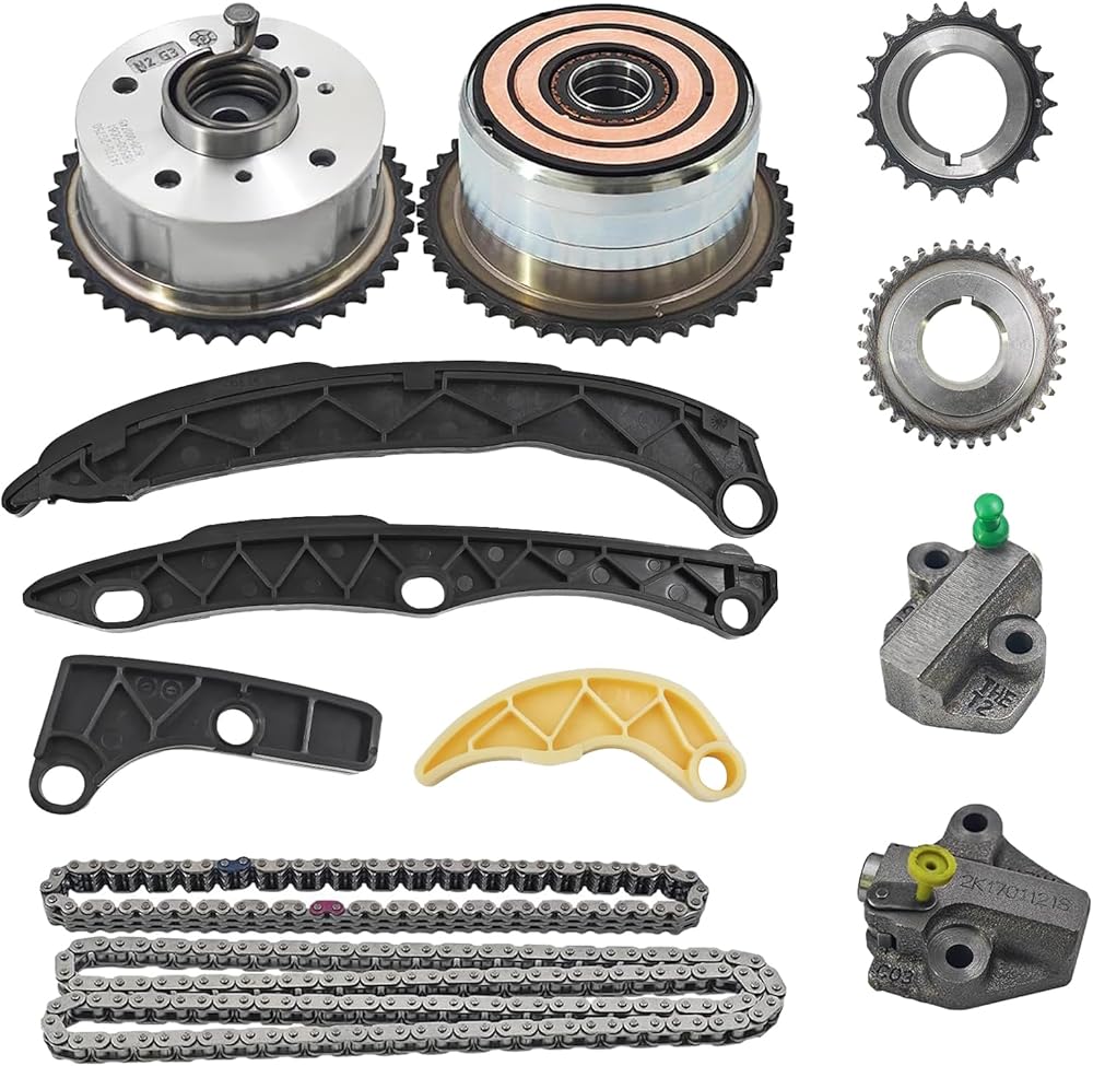 • Complete kit: Includes 12 core components such as dual VVT sprockets (VVT1: 24370-2G751 / VVT2: 24350-2GGB0), dual timing sprockets, dual tensioners, dual guide rails, dual chains, and tensioning arms, avoiding the omission of parts by purchasing them piecemeal, and completing the entire timing system replacement in one go