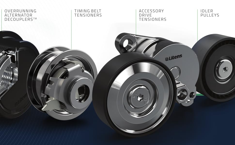 Litens was the Original Equipment (O.E.) supplier of this part and offers this "O.E. Exact" part for the aftermarket. This popular tensioner designed for Ford Diesel vehicles, looks, fits, and performs like the original part being replaced. "O.E. Exact" - Original Equipment manufacturers prohibits the use of their part number or logo on parts sold to other customers. Therefore, the Litens aftermarket part may have minor cosmetic differences but still be exact in performance and design. Like the original design, this tensioner maintains the molded dual locating pins, a molded lift feature in the arm, and the heavy duty steel pulley. The Tensioner comes complete with a new fastening bolt. Choosing The Correct Replacement Part: Both the original equipment and Litens aftermarket tensioner use a round spring versus a flat spring and are marked "Made in Canada". Litens is the world's largest supplier of original equipment (O.E.) power transmission products. At Litens, we design systems that are more efficient, resulting in tangible fuel economy/emissions benefits. Litens holds over 2000 patents and continues to respond to the ever-changing automotive industry by investing heavily in new technology, facilities, and people. 90% of our line is made of products coming from the OE manufacturer, which makes the Litens Tensioning Products portfolio the purest OE tensioning line in the North American aftermarket.