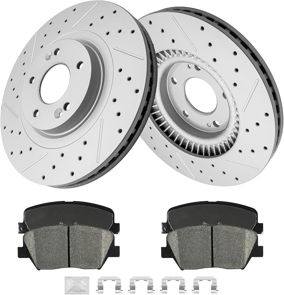 Front Brakes and Rotors Kit, Ceramic Brake Pads and Drilled and Slotted Brake Rotors, Fit for 2013 2014 2015 2016 Hyundai Santa Fe Sport, 2014 2015 Kia Sorento