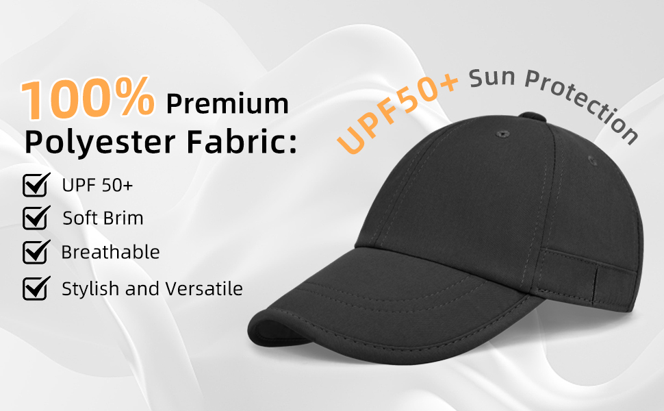 Soft, Foldable Brim:This lightweight, foldable baseball cap features a brim that easily folds or rolls up for storage in backpacks, pockets, golf bags, or travel cases. It quickly regains its shape when unfolded and maintains its form even after repeated use. The soft, moldable brim allows for customizable shaping to achieve multiple wearing styles, complementing your diverse fashion choices.