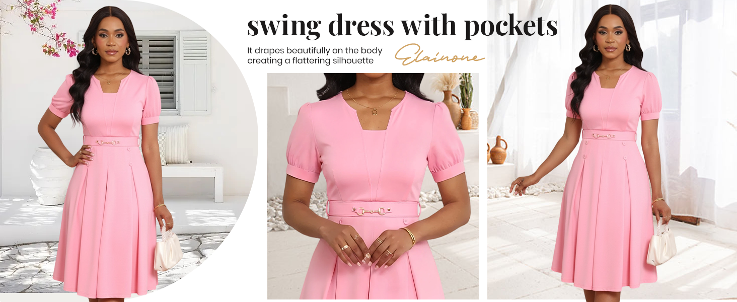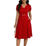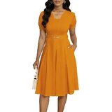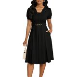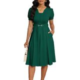 - 𝐅𝐞𝐚𝐭𝐮𝐫𝐞: Fit and flare dress for women features puff short sleeves, two side pockets and waist belt