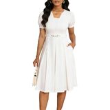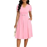 - Short sleeve semi formal dresses for women with pockets summer casual a line dress