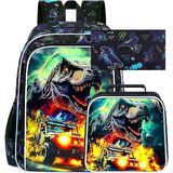 Kids Backpack with New Technology: This backpack for school is made of technology-filled uv process, and the vivid T-Rex driving an off-road vehicle are always flashing colorful when seen from different angles.