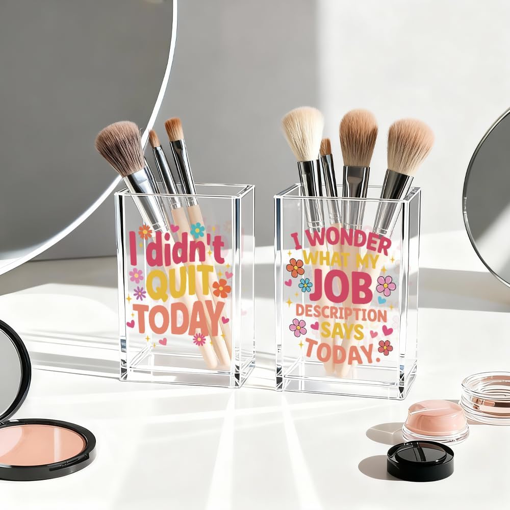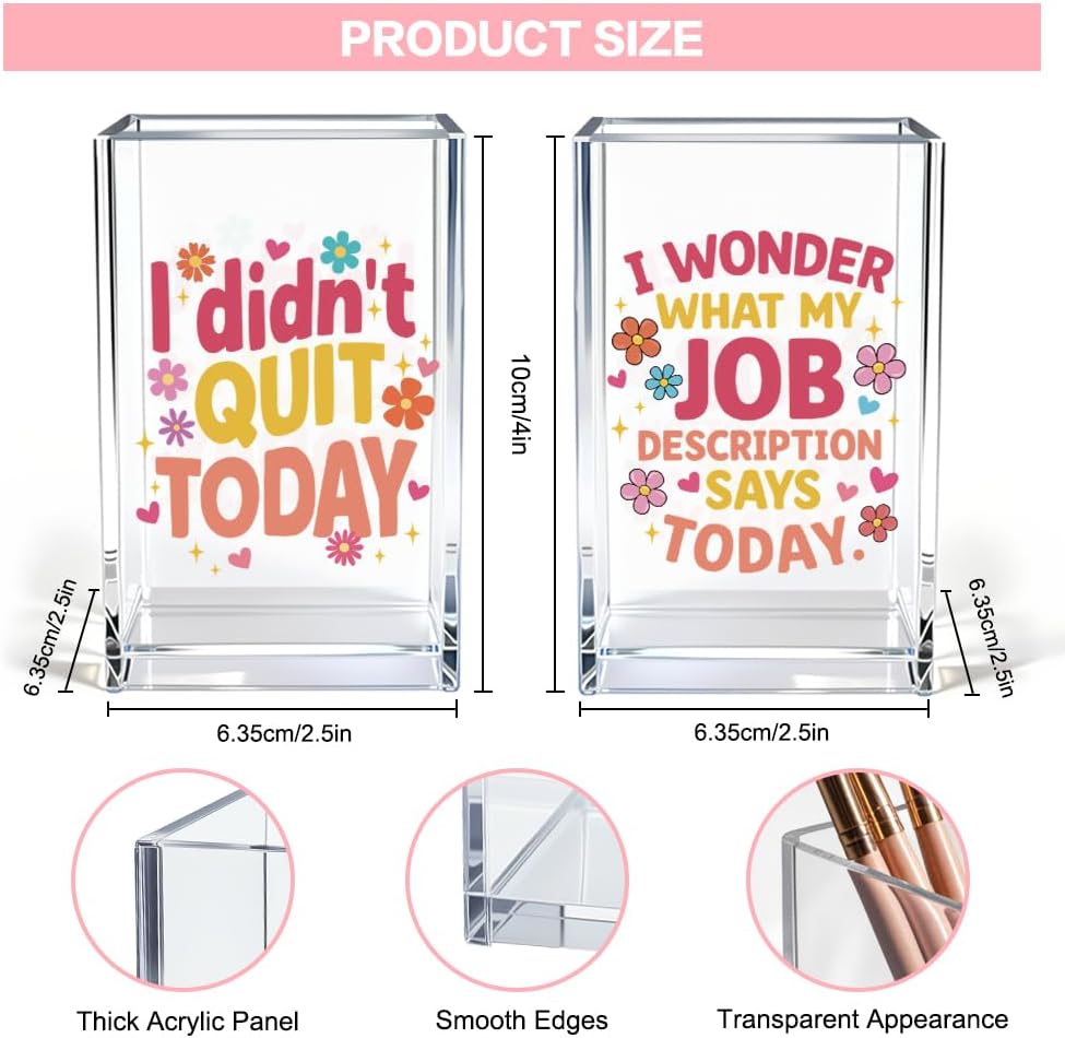 I Didn't Quit Today Acrylic Pen Holder Cup Set 2, Cute Pencil Holder Desk Organizer, Funny Desk Accessories, Work Humor Gifts, Sarcastic Office Gifts for Women Coworkers Teachers Besties Nurses