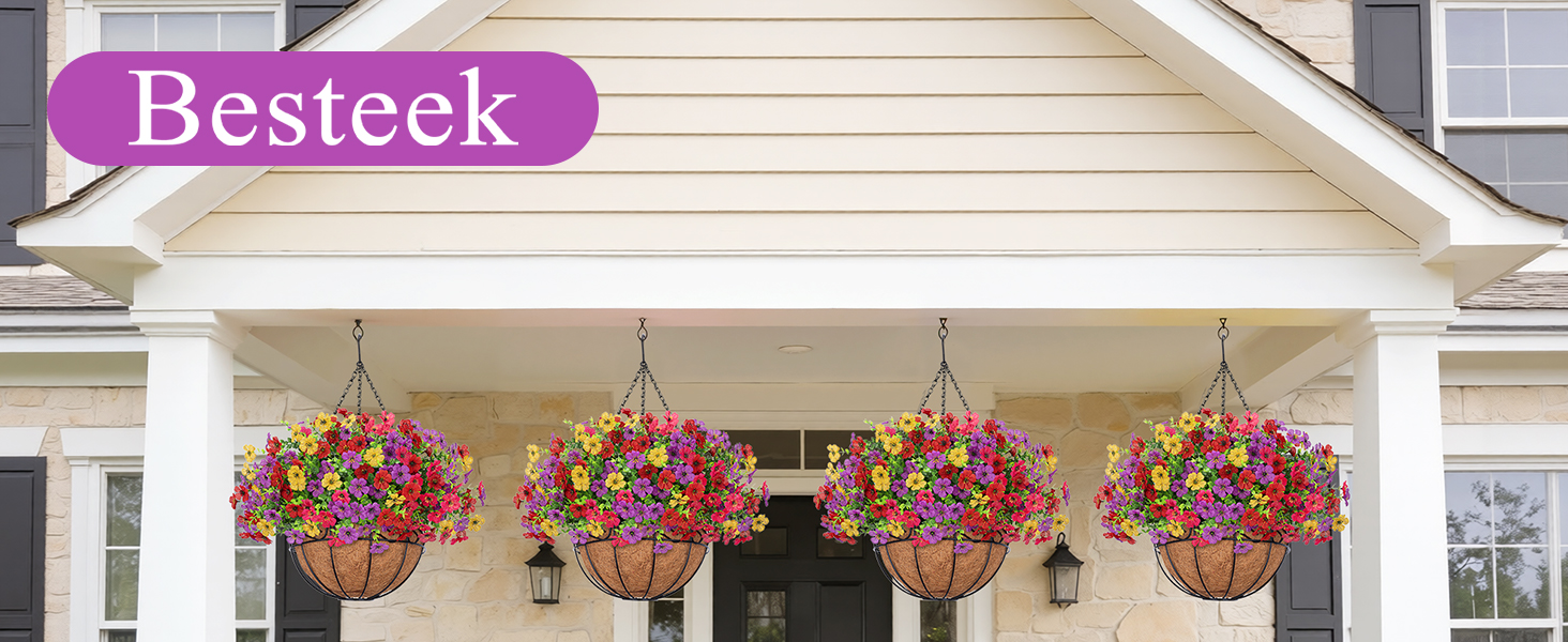 High Quality: Fake hanging flowers are made of premium silk and plastic for a realistic look; artificial hanging flowers for outdoors are UV resistant, sturdy enough for any weather and will keep vibrant colors for a long time and blooms all seasons