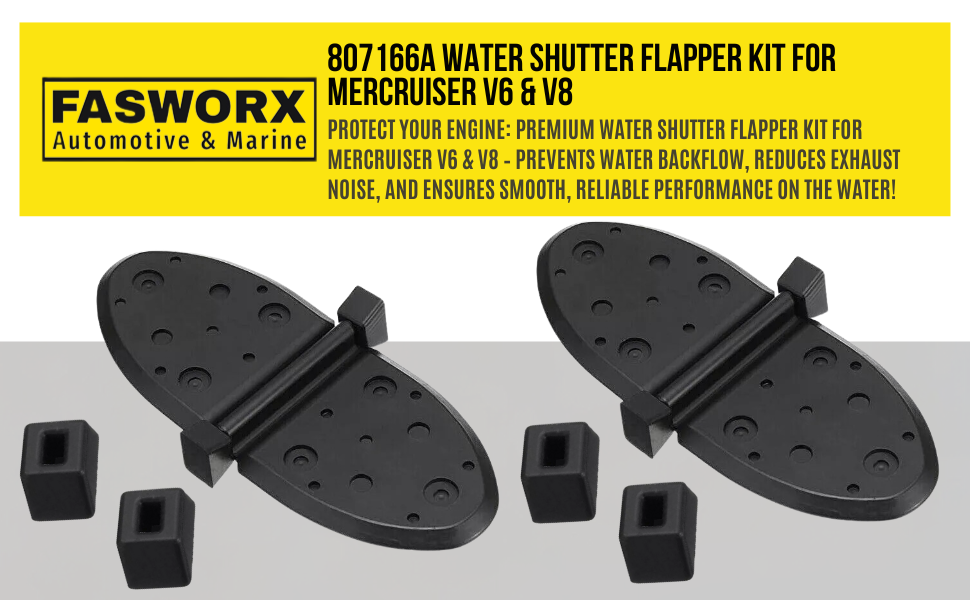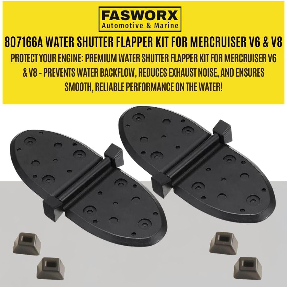 807166A1 Pair (2 Pieces) of Water Shutter Flapper Kit for MerCruiser Stern Drive, V6 & V8 Engines, 1998 & Newer, Exhaust Y Pipe Water Flapper by FASWORX