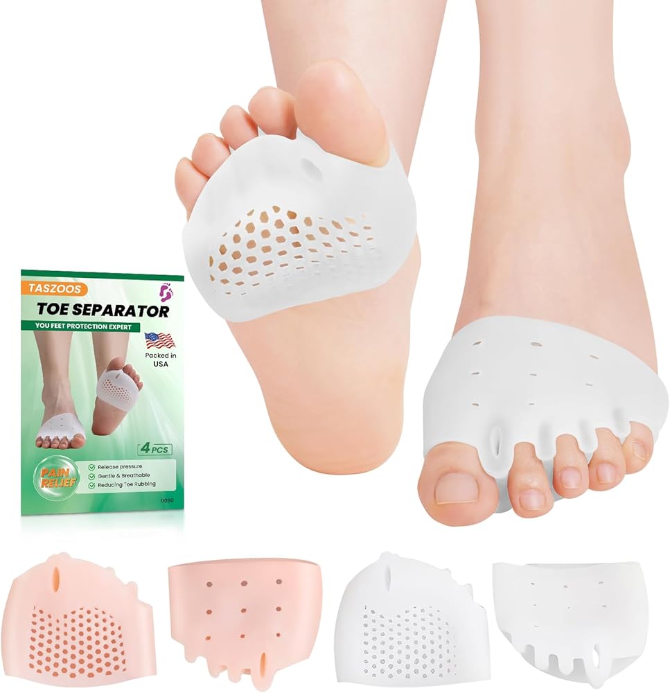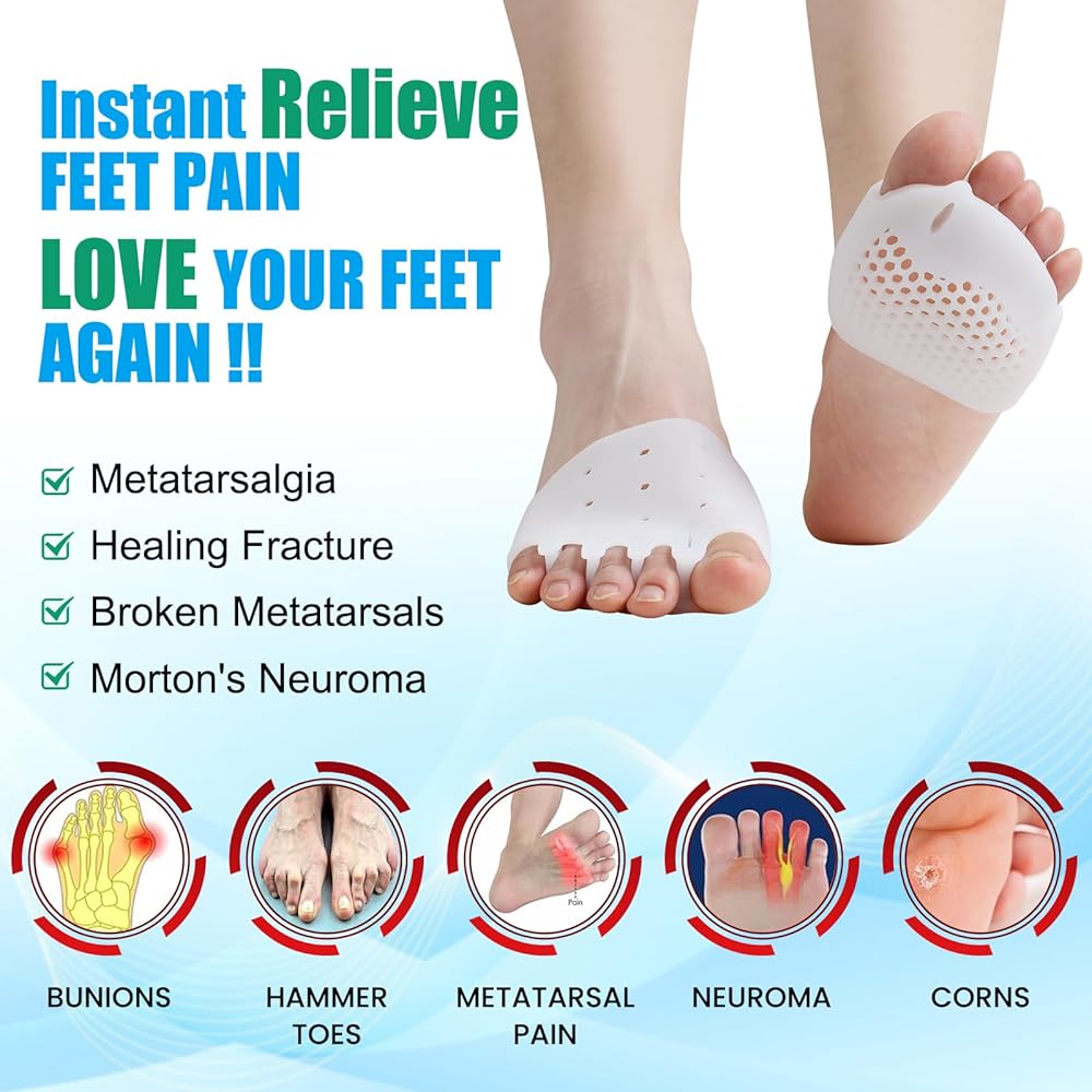 Toe Separators & Metatarsal Pads for Women & Men - 4 PCS Gel Toe Spacers, Ball of Foot Cushions for Pain Relief, Metatarsalgia, Morton's Neuroma, All-Day Comfort for Walking, Running, Standing