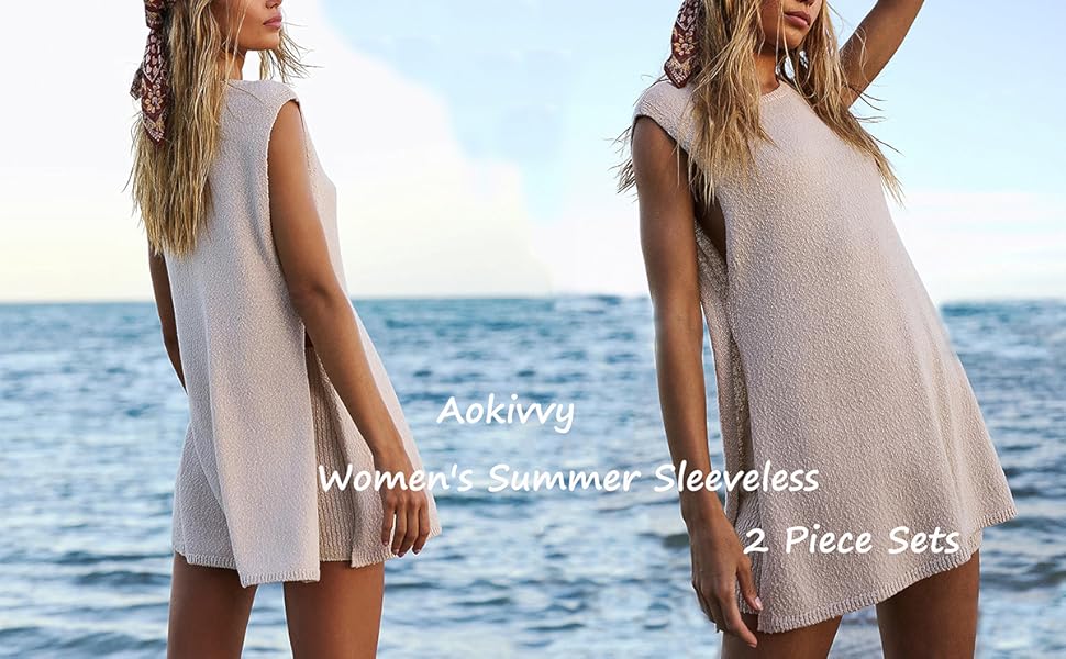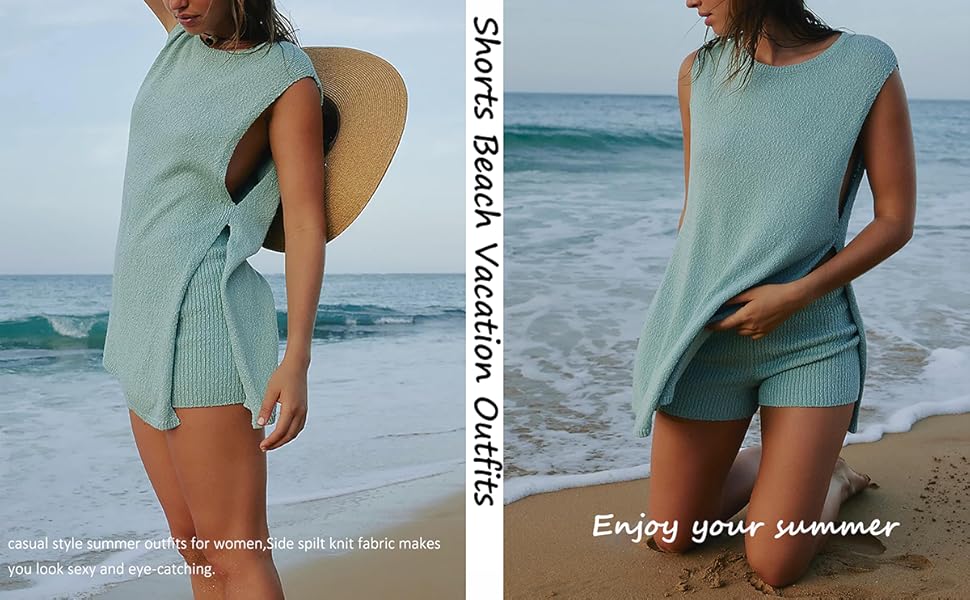 Occasions: womens summer knit sweater set sleeveless tunic top matching shorts perfect for beach, vacation, holiday, travel, party, home, lounge, work, casual, shopping,cozy loungewear, pajama sets daily wear.