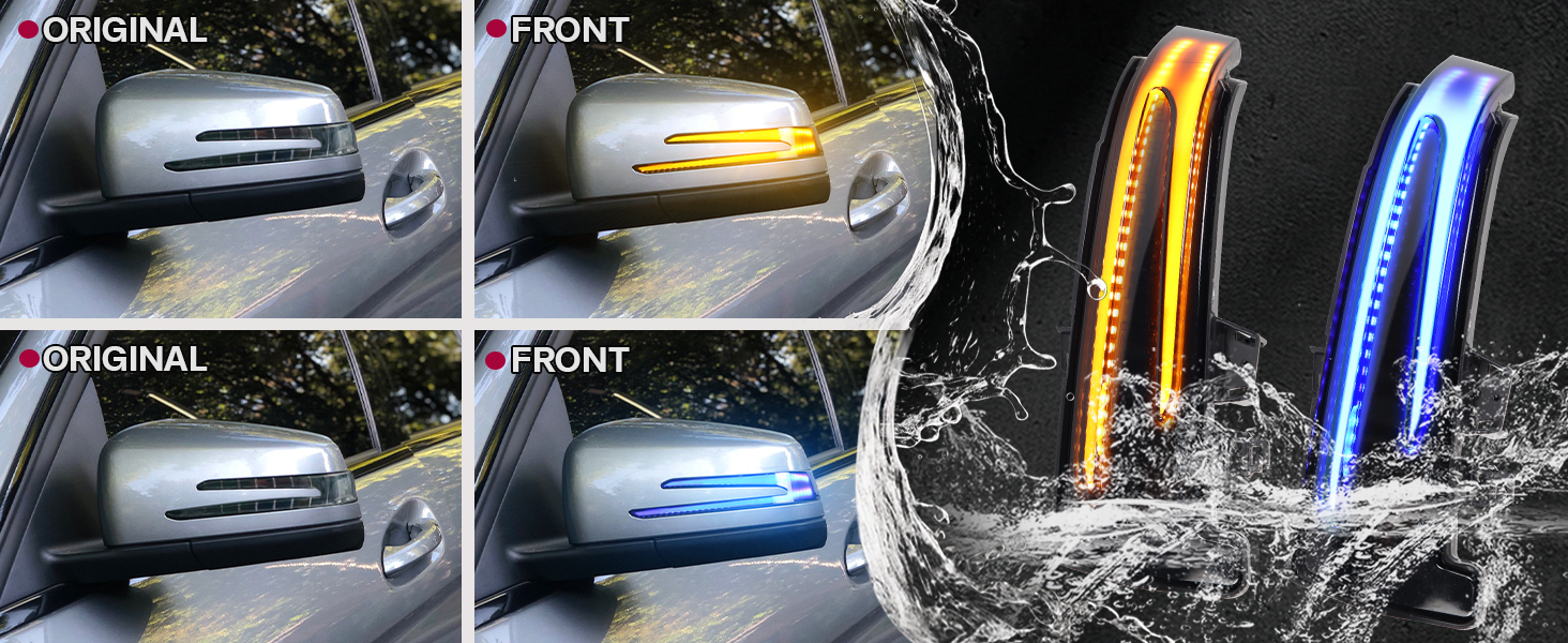 𝐃𝐲𝐧𝐚𝐦𝐢𝐜 𝐕𝐞𝐬𝐢𝐨𝐧: Upgrade Mercedes Benz W204 mirror turn signal have 2 color light, sequential amber lights as turn signal light and 15 seconds bule dynamic scan lights when your open/close door and turn on/off puddle lights. Benz mirror lights have high-power SMD LED chips, 6000K, provide 5x brightness than OEM bulb, and short animation, more easy to catch everyone's eyes, greatly improved security.