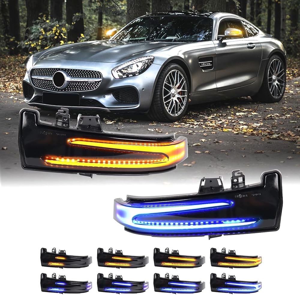 Sequential Side Mirror Turn Signal Lights for Mercedes Benz A/B/C/E/S/CLA/GLA/GLK/CLS Class W204 W176 W212 W246 W221 C250 C300 2006-2017 Dynamic Blue Amber Indicator with Smoked Lens Assembly