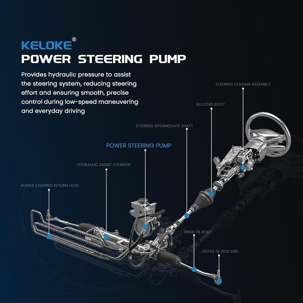 [Function]: Resolves heavy steering, noise, fluid leaks, dashboard warnings, and vibrations. Restore smooth and responsive steering control. Note: Use specified fluid grade, avoid full-lock maneuvers, and periodically inspect the drive belt.