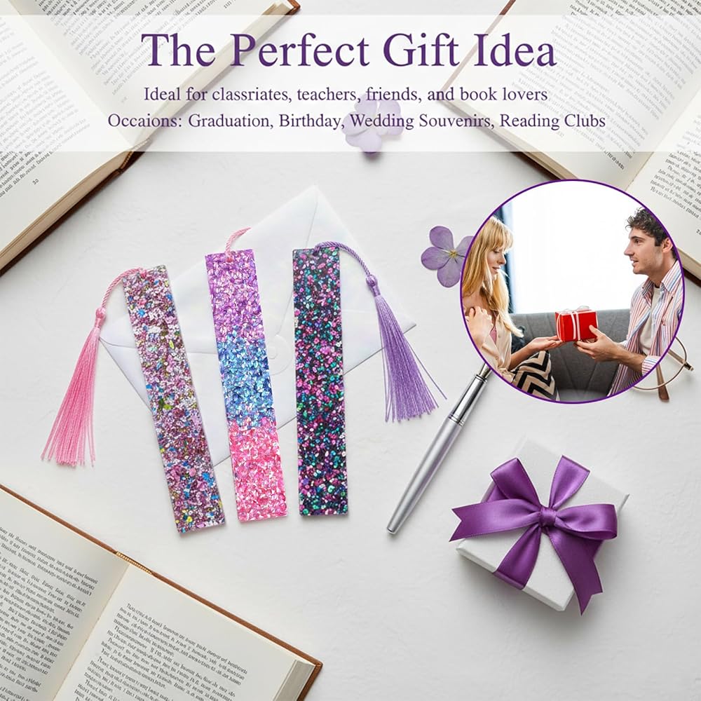 [Elegant Design] Our cool bookmarks feature a unique resin glitter design that beautifully captures light, creating a captivating effect. The bookmark with tassel included tassels add a touch of elegance, making them a stylish accessory for any book lover