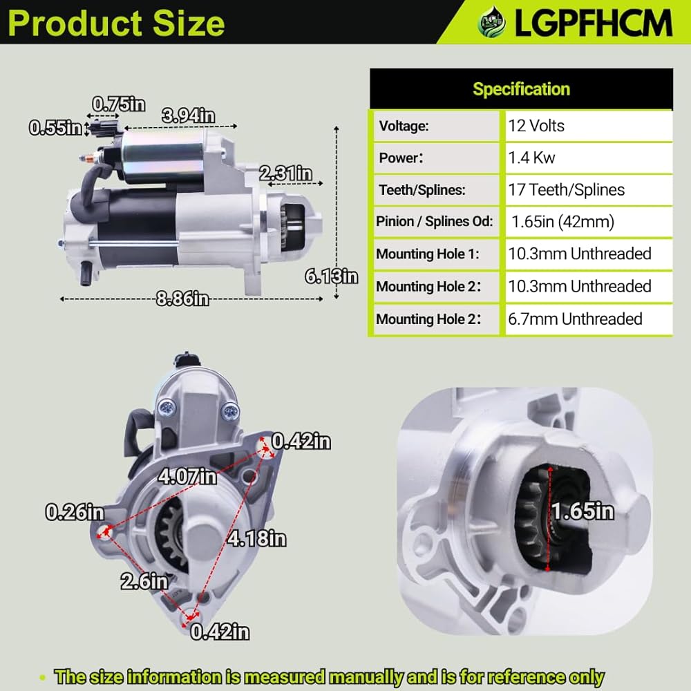 MPA12473 12V 1.4 KW 17T Starter Motor for Chevrolet L4 1.5L Equinox 2018-2023 Malibu 2017-2023 1.4L Cruze 2017-2019 for GMC Terrain 1.5L 2018-2023 for Buick Encore 1.5L 2017-2019 CW # 12673600