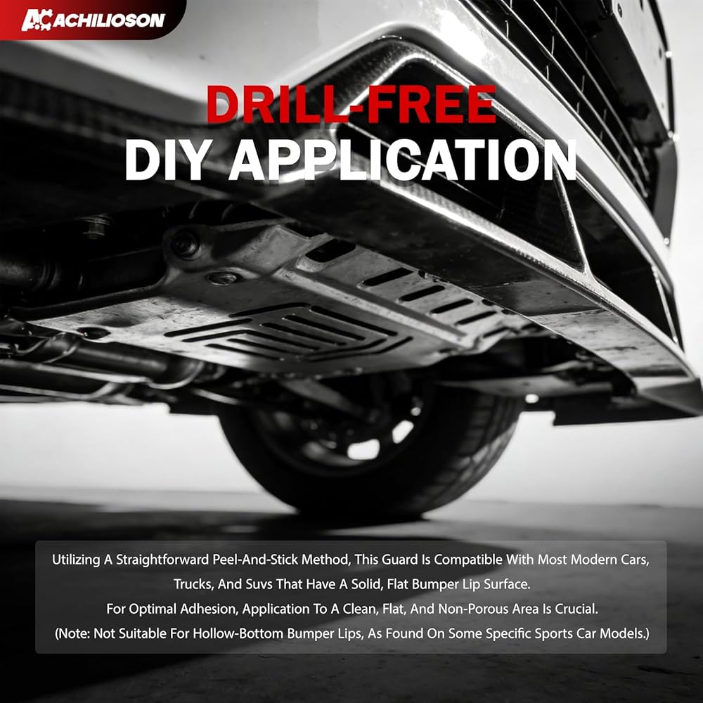 • 【Universal Drill-Free DIY Installation & Usage Tips】Compatible with most modern cars, trucks and SUVs, the guard installs with a simple stick-and-go method that stays secure at high speeds and in intense weather. For full coverage: 1 kit for front lip protection, 2 kits for extended bumpers, 4 kits for extended bumpers plus rocker panels. Note: A flat surface is required for adhesion; the product will not work on vehicles with hollow-bottom bumper lips (e.g., some Porsche 911 and Corvette models). Each kit contains 8 pieces, sufficient for most front bumper lips.
