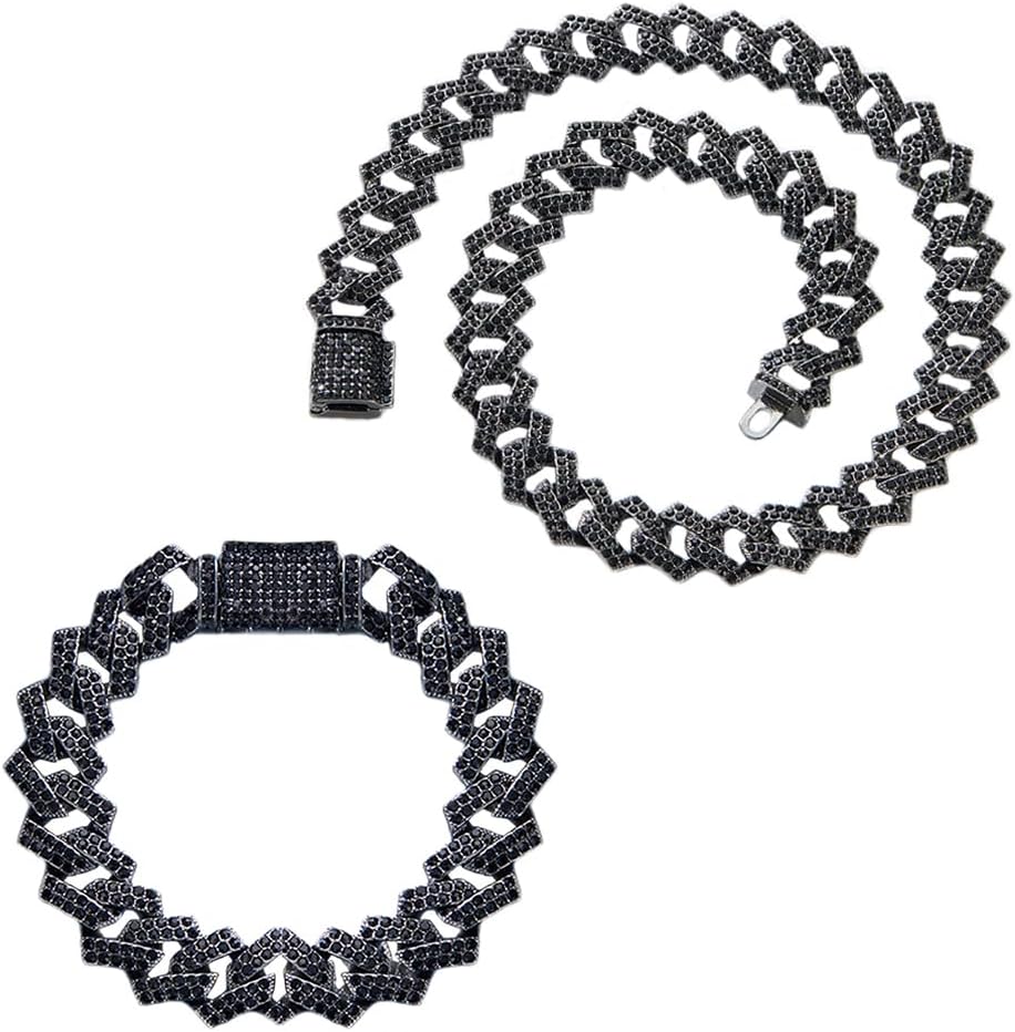 【Design Concept】-- 2PCS black cuban link set, heavier and thicker, solid and durable. Shiny and smooth finish, fashionable appearance, fit to men and women perfectly. With hip-hop style and unique color, they will always put you in the spot light in all occasions, make you stand out from the crowd and receive compliments.