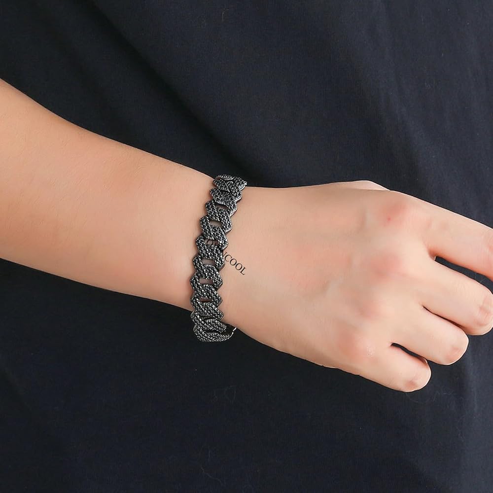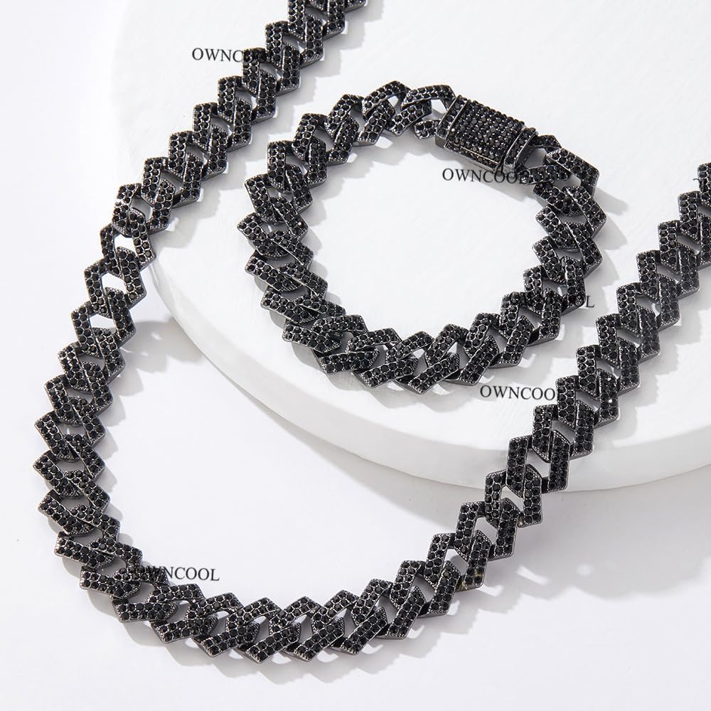 【High Quality Material】 -- Iced Out Black Chain is made of high quality gold plated and 5A clear rhinestones, free of lead and nickel, healthy and safe. This black diamond chain is adorned with sparkling diamonds, each stone is carefully set by a professional jeweler, creating a totally iced out look.