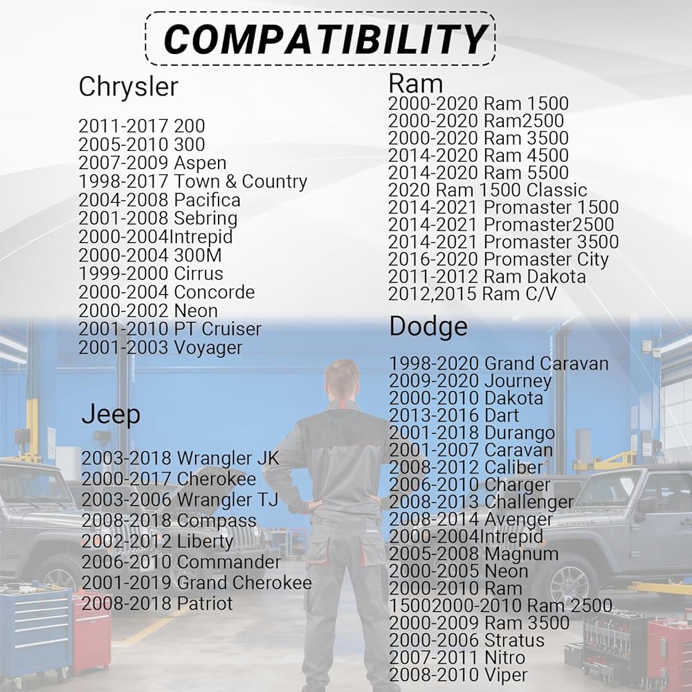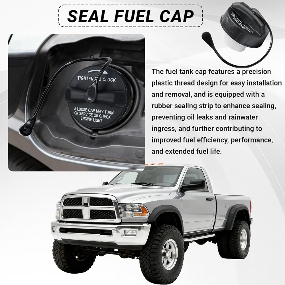 Ensure a perfect seal and prevent fuel vapor leaks with the KoiLuvGo Gas Cap. This direct OEM replacement, matching part numbers 52030377AB, 5278632AG, and 52030377AA, is crafted from high-quality ABS with a precision threaded design and integrated rubber seal for a secure, leak-proof fit. It is compatible with a wide range of Dodge, Ram, Jeep, and Chrysler vehicles, including the Ram 1500/2500/3500, Challenger, Charger, Wrangler JK, Durango, and Grand Cherokee. Enjoy easy installation and reliable performance with this durable fuel cap replacement.