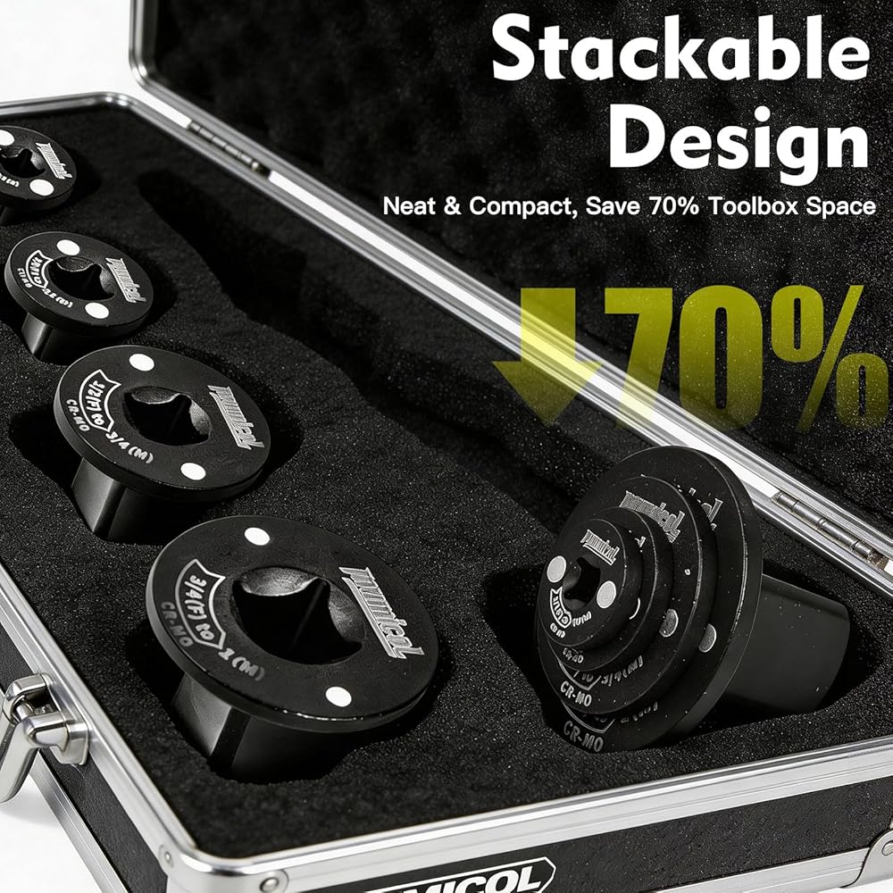 【Stackable & Space-Saving】 Socket adapter set nest together magnetically for compact storage, keeping your toolbox organized and saving valuable space.