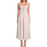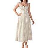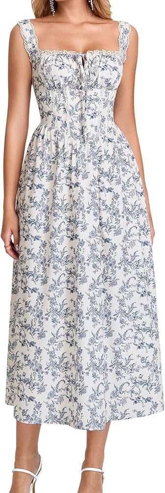 Features: Designed with adjustable straps, delicate lace, corset top, smocked back and flowy A-line hem. Ideal for women searching for spring corset sundress, floral A-line dress, tea party dress, boho summer dress, and bridal shower dress.