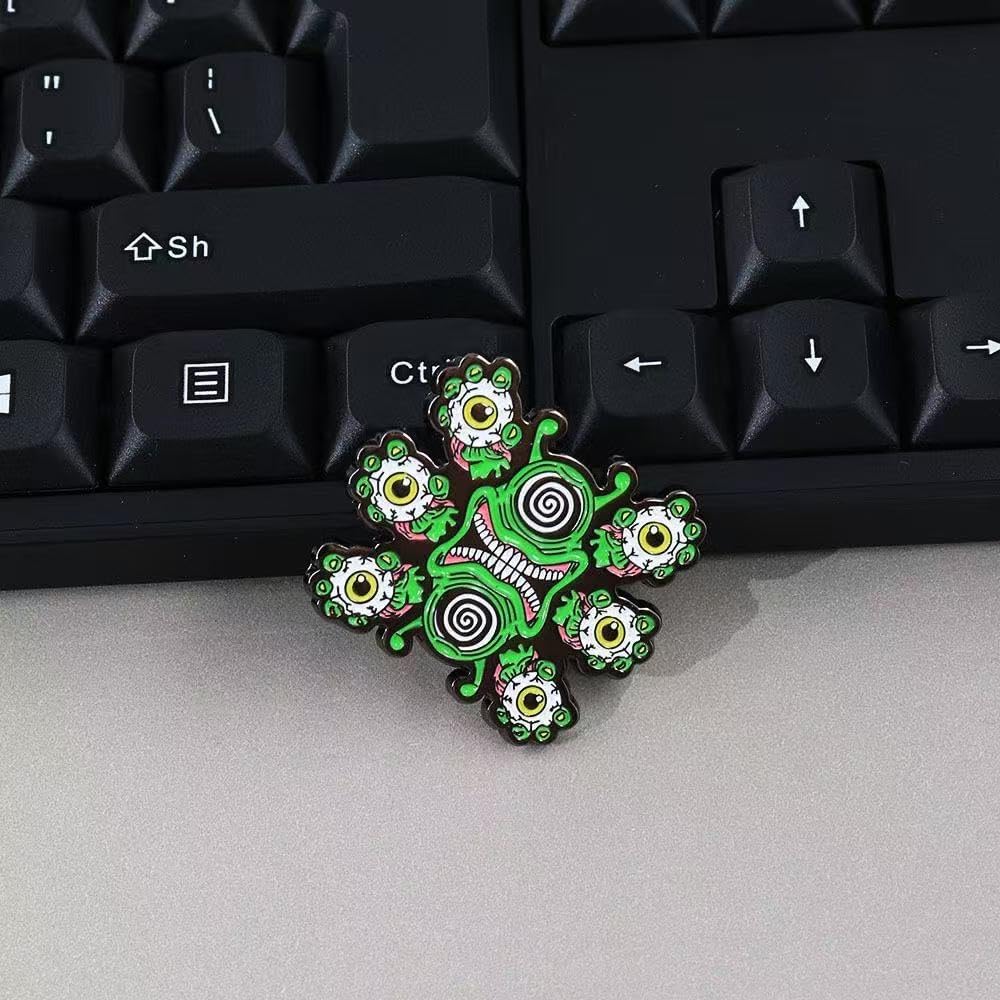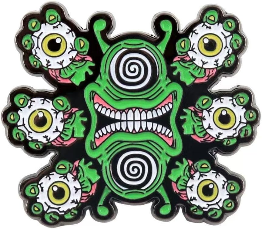 Add a touch of unsettling beauty to your style with our Creepy Green Eye Flower Enamel Pin. This striking accessory features a cluster of green flowers, each with a swirling, hypnotic eye at its center—blending the delicate charm of florals with a dark, surreal twist. It's a perfect choice for anyone who loves weirdcore, dark art, or horror aesthetics, and wants to carry a piece of that uncanny energy with them. Crafted from premium enamel and sturdy metal, this pin is designed for long-lasting wear. The vibrant green, black, and white details create an eye-catching design that pairs beautifully with any style, whether you're dressing up for a gothic event or adding a weirdcore touch to your everyday look. The secure butterfly clutch backing keeps it firmly in place on backpacks, leather jackets, hats, or lanyards, so you can take your creepy floral statement with you wherever you go. This pin isn't just an accessory—it's a way to connect with fellow dark art enthusiasts and celebrate the beauty of the uncanny. It also makes an excellent gift for weirdcore fans, horror movie buffs, or anyone who needs a reminder of their strange, surreal side. Whether you're wearing it for yourself or giving it to a friend, this Creepy Green Eye Flower pin is sure to be a hit. Don't miss out on the chance to wear your love for weird and wonderful art on your sleeve (or backpack!). Order your Creepy Green Eye Flower Enamel Pin today and let the world know you embrace the beauty of the unsettling.