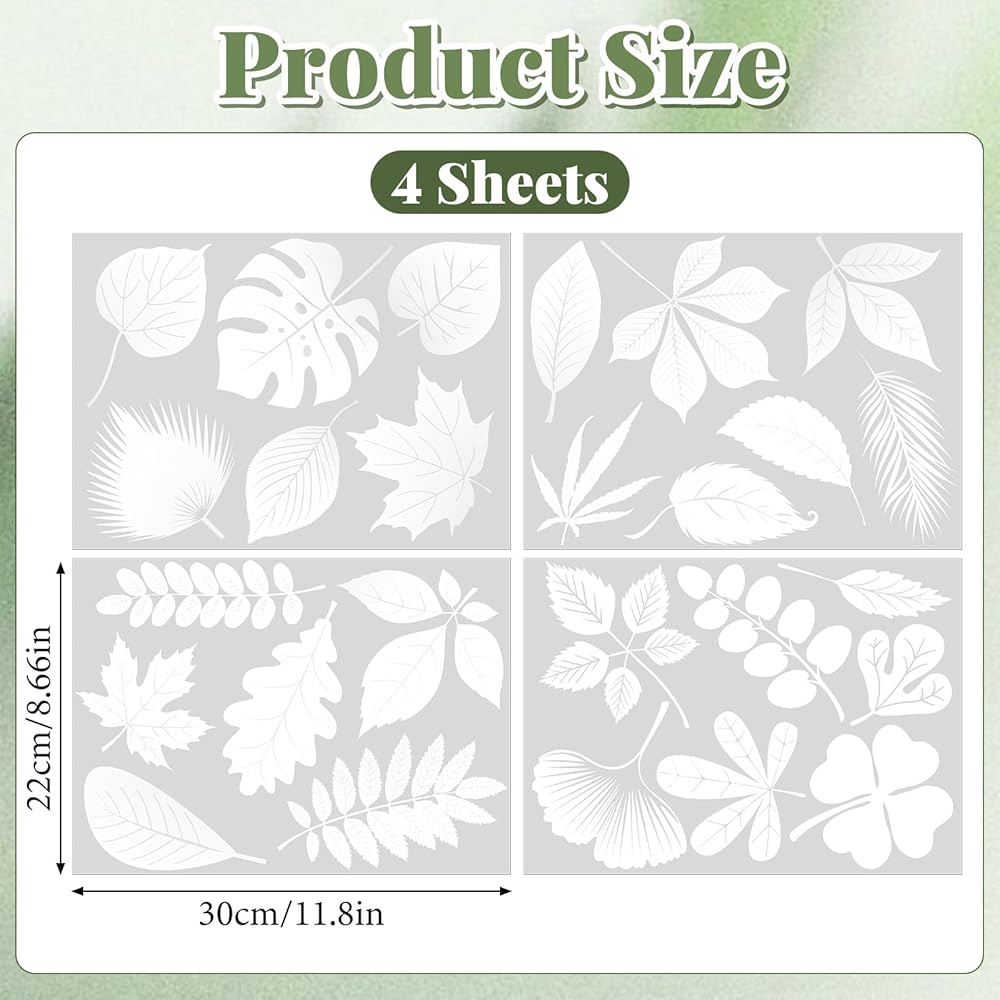 Package Includes: You will receive 4 leaf-shaped bird-proof window stickers, containing 26 small stickers with various designs and sufficient quantity to meet your needs.