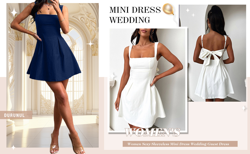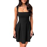 DURUNUL Women's Square Neck A-Line Mini Dresses Chic Cocktail Dress Sleeveless Tank Top Mini Dress Going Out Dresses for E-Girls
