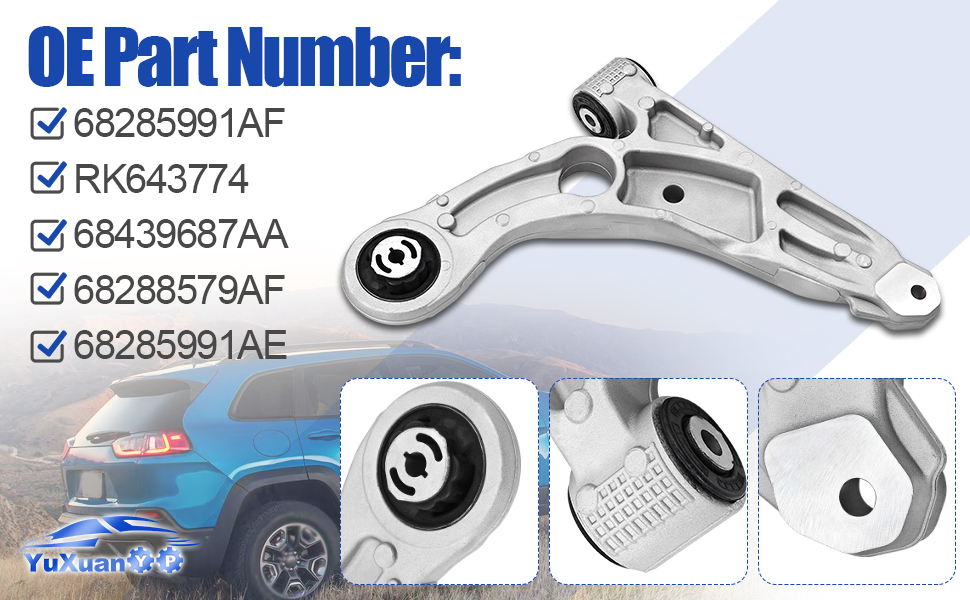 [Easy to Install]: The 68285991AF front left lower control arm is made of new materials, according to original factory specifications, matches the function of the original spare parts, and can be easily installed and directly replaced.