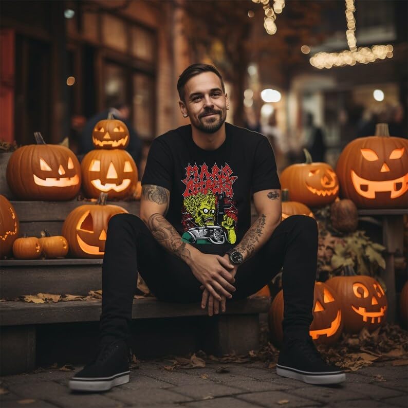 Aliens Attack Mars T-Shirt Vibrant Graphic Print No Fade Soft 100% Cotton Black Shirt