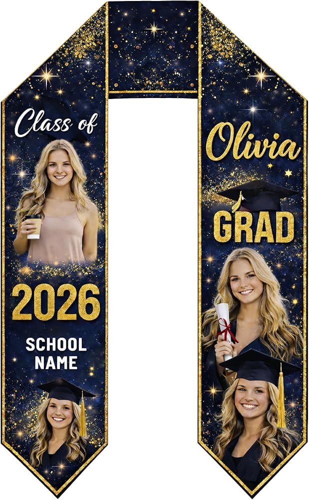 Custom Graduation Stoles Class of 2026 Congratulation Gifts, Graduation Stoles with Photo & Name 1