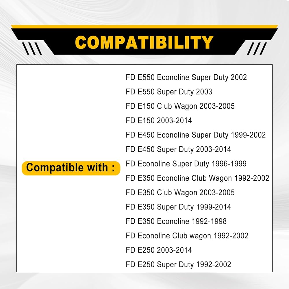 Wide Compatibility: Fits a range of Ford E-Series models, including the 2003-2014 Ford E-150, E-250, E-350 Super Duty, and E-450 Super Duty. Also compatible with other Ford Econoline and Super Duty vans. Check the OE numbers (e.g., 9C2Z-15434A20-AB, 8C2Z-15434A20-AB) to confirm fitment