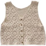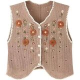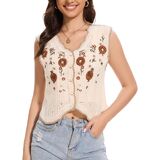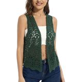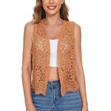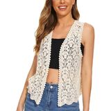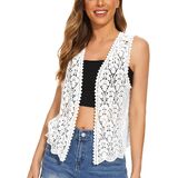 Womens crochet vest Lace Trim Lightweight open front sleeveless cover up cardigan featuring cut out flower lace trim design. long models are versatile and more modifying body shape
