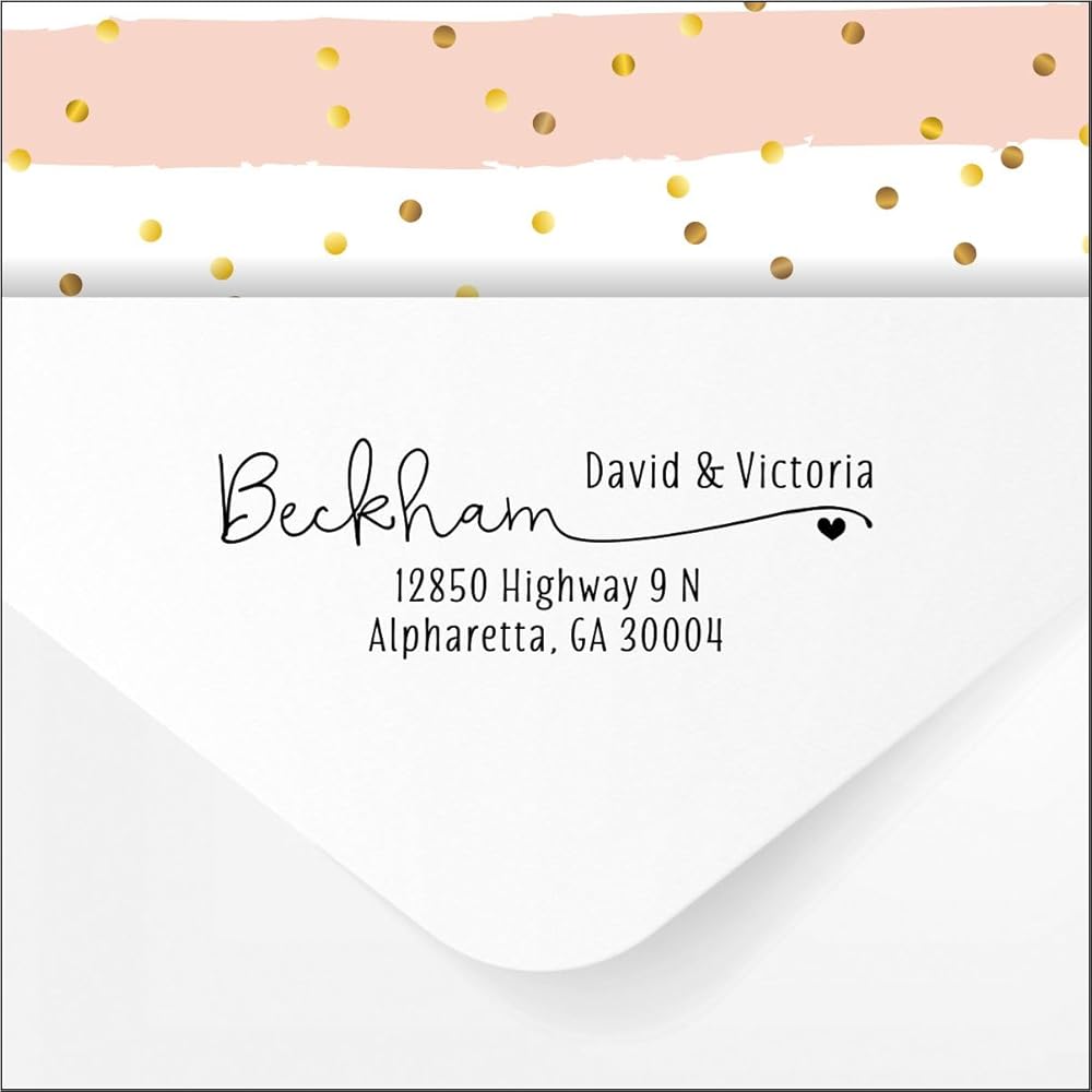 The built-in ink pad provides clean, consistent impressions every time, making this personalized stamp a must-have for weddings, small businesses, home offices, and personal mail. Whether you're organizing mailing labels for envelopes, creating wedding invitation suites, or streamlining your business correspondence, this custom rubber stamp makes it easy and elegant.