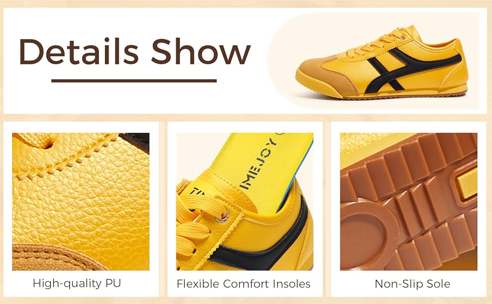 Premium Materials: Soft PU upper exudes vintage charm—minimalist color-blocking complements nostalgic stitching. Perfectly pairs with jeans, mom shorts, or linen dresses for feminine retro athletic style.