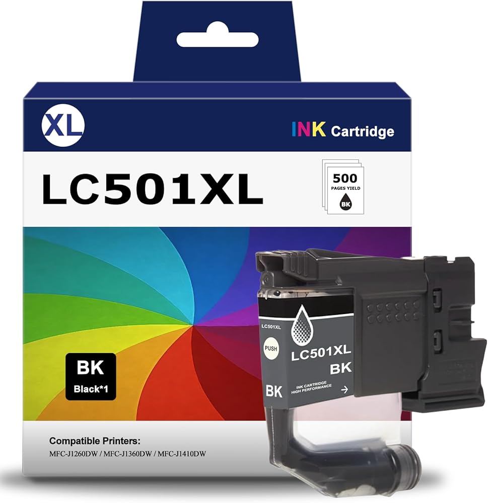 Package Includes: LC501 Ink for MFC-J1360DW Printer (LC501 Black Ink Cartridge).
