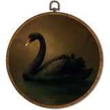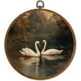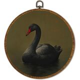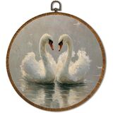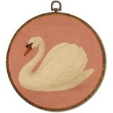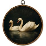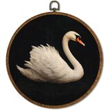 Vintage White Swan Wall Art Decor 10x10 Inch Framed - Dark Moody Gothic Decor, Aesthetic Circular Art for Home Living Room, Unique Gift for Swan Lover, Neutral Retro Artwork (Pink Swan6)