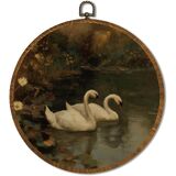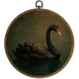 Vintage White Swan Wall Art Decor 10x10 Inch Framed - Dark Moody Gothic Decor, Aesthetic Circular Art for Home Living Room, Unique Gift for Swan Lover, Neutral Retro Artwork (Pink Swan6) in Kuwait