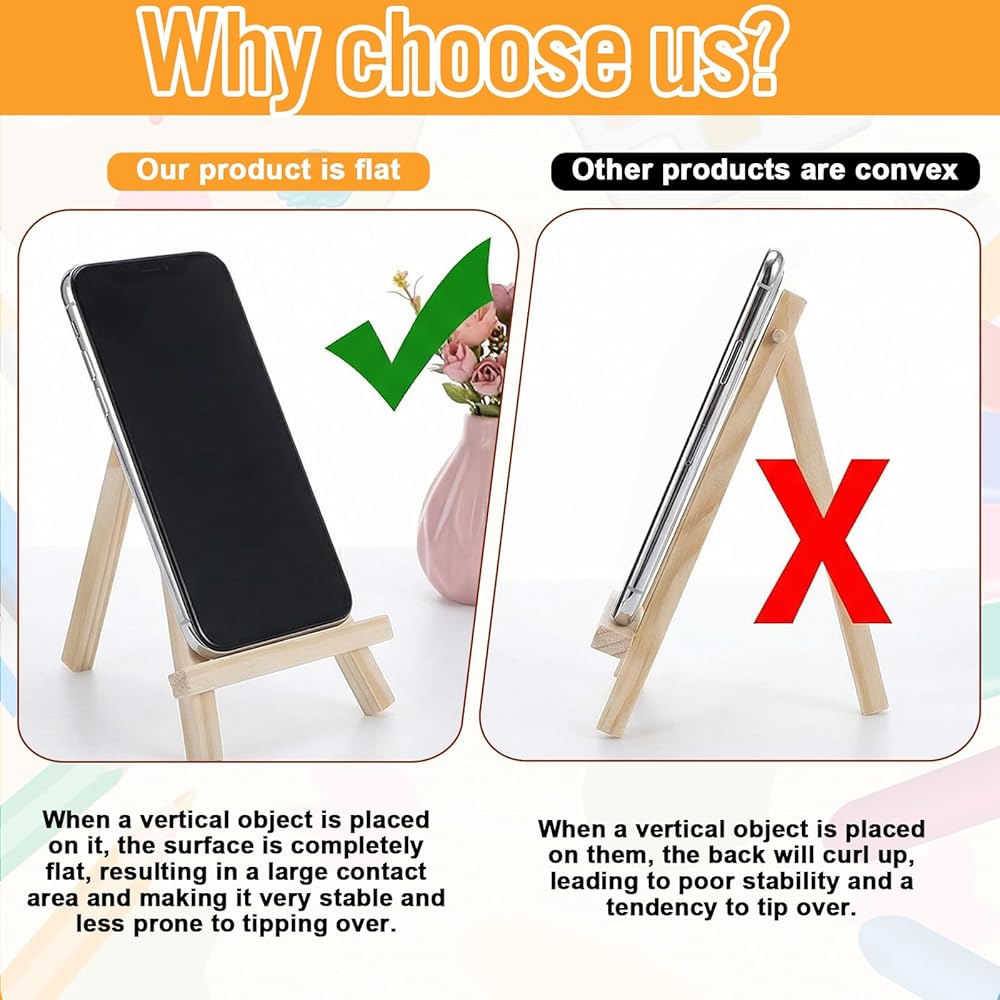 【Stable Design】Our mini wooden easels feature a sloping top and flat contact surfaces, ensuring stability when displaying items such as small canvases and smartphones. Perfect for desks and bedside tables, they transform everyday objects into visual focal points.