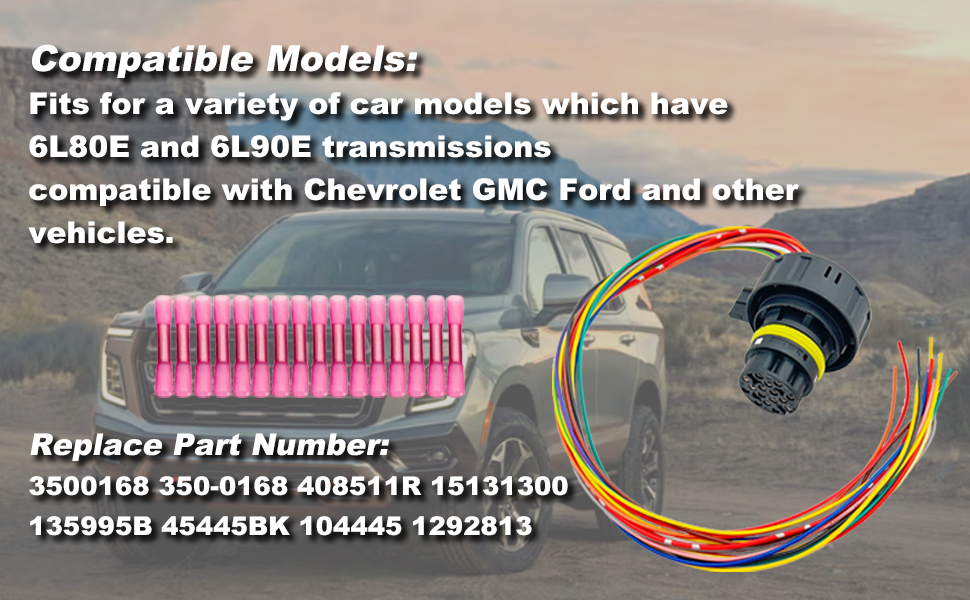 Compatible Models: The pigtail can be used for all 6L80E and 6L90E transmissions, compatible with Chevrolet GMC Ford, and fit for the car automatic transmission 6R60 6R80 6R75 external harness pigtail repair kit