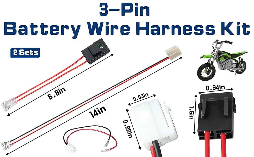 Wide Compatibility:3 Holes 2 Wire Plug Battery Harness for Razor PR200-V 27 and up, Razor MX350 - V33 and up, MX350 - V33 and up, MX400 - V33 and up, Pocket Mod - V45 and up