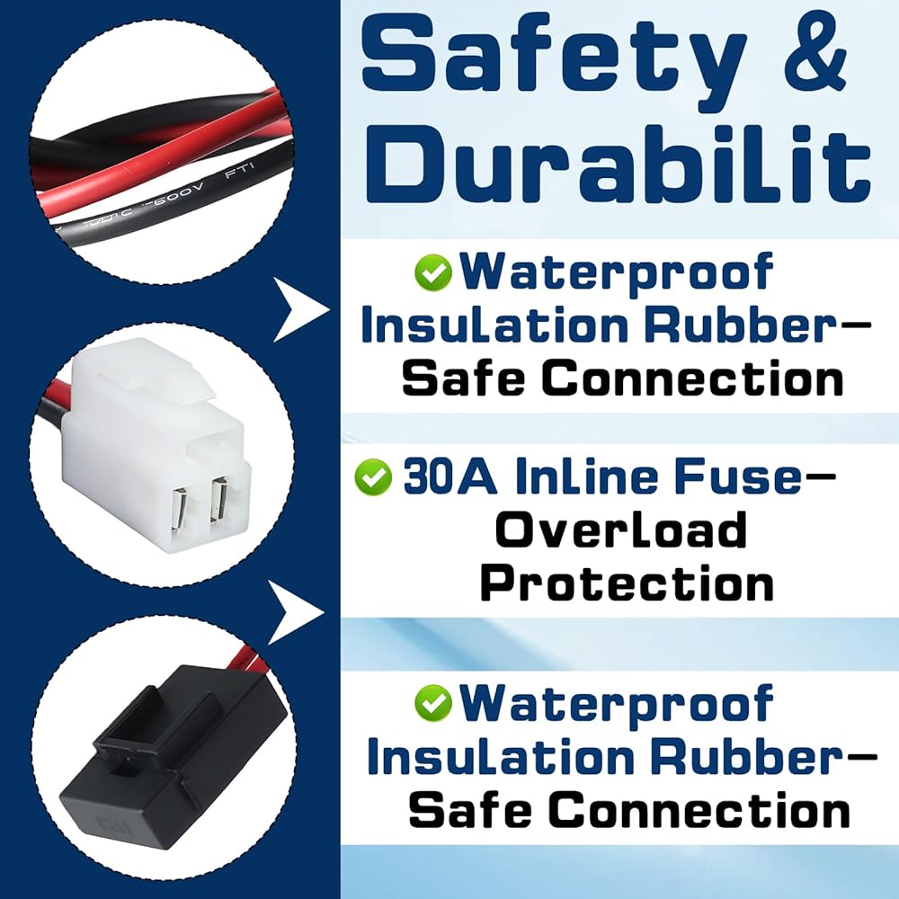 Durable Material & Stable Performance:Made with 14AWG pure copper wire for conductivity. Features waterproof, insulated, and heat-resistant construction for reliable power delivery