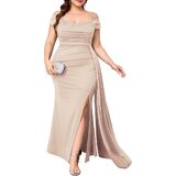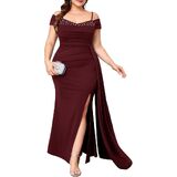 Off-Shoulder Design: This plus size evening dress features flattering off shoulder design elegantly frames your neckline, while the rhinestone-adorned front becomes a dazzling focal point for a sophisticated look.