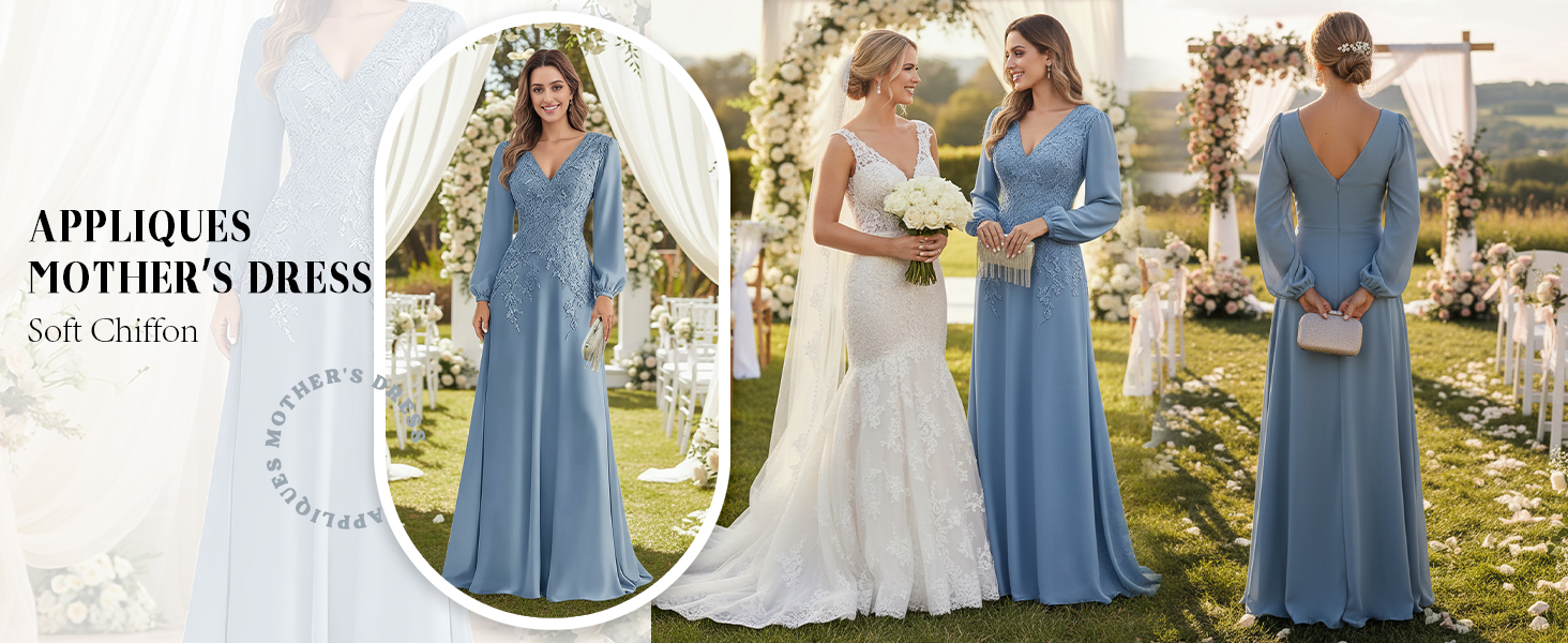 SOFT FABRIC: The Main Fabric of this Mother of the Bride Dresses is High-Quality Chiffon and Appliques, which is very Comfortable for you to Wear.