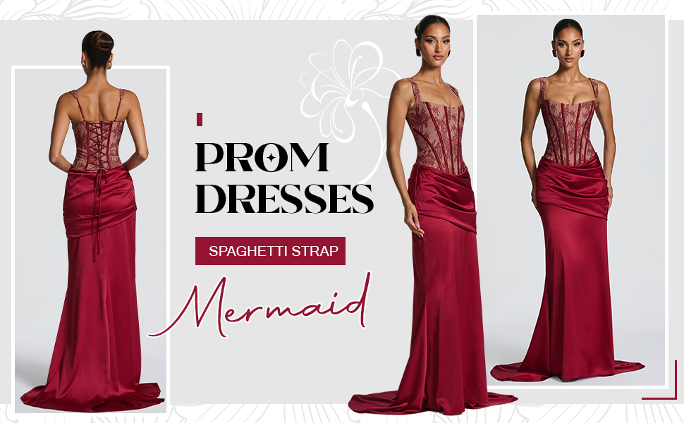 Design:Floral Lace Satin Prom Dresses for Teens,Mermaid Prom Dresses for Women 2026,Square Neck Prom Dress,Spaghetti Straps Bridesmaid Dresses for Wedding,Ruched,Pleated,Long,Floor Length,Sexy,Tight,Bodycon,Built-In Bra,Fully Lined.
