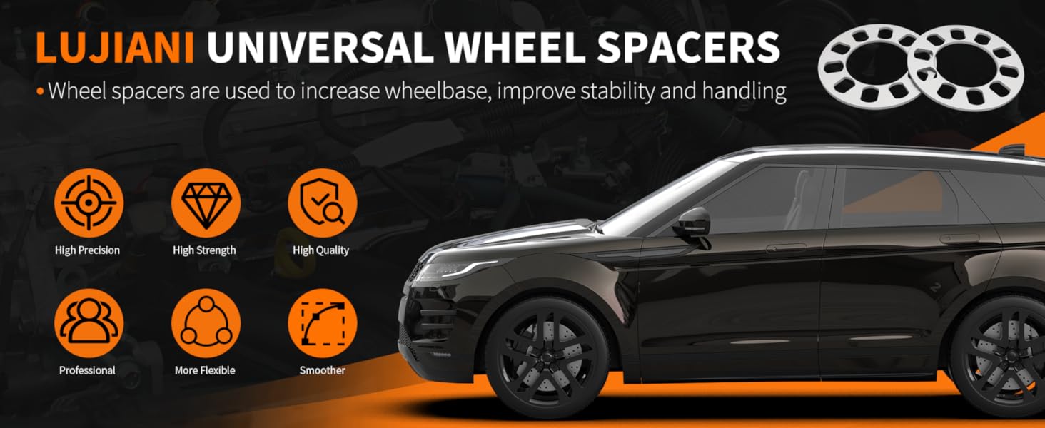 【APPLICABLE MODELS】This universal wheel spacer is compatible with the following bolt patterns of vehicles. 5x100mm, 5x108mm, 5x110mm, 5x112mm, 5x114.3mm (5x4.5"), 5x115mm, 5x118mm, 5x120mm. Before purchasing, please check the number of bolt holes, wheel bolt size and hub PCD