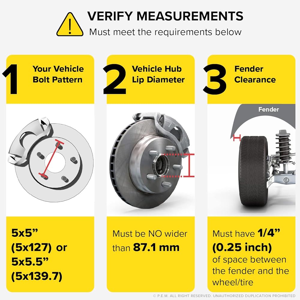 Fits vehicles with 5x5" or 5x5.5" Bolt Pattern. NOTE: These Spacers are Universal Fitment and are NOT Hubcentric.